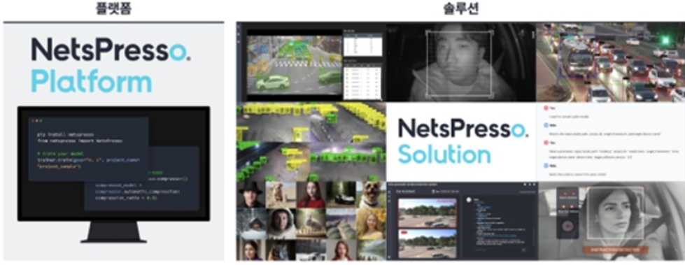 - NetsPresso Solution : 엣지 AI 기반 영상 분석 기술을 중심으로 다양한 산업에 최적화된 경량 모델을 제공하는 종합 솔루션. 고도로 특화된 AI 모델을 생성하여 교통안전, 운전자 모니터링, 안면인식 등 여러 분야에서 실질적인 문제 해결을 돕는 역할.