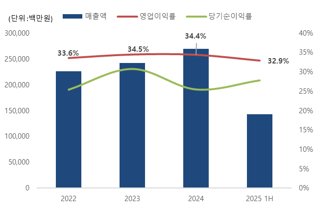 | 영업이익률 | 32.93% | 34.43% | 34.50% | 33.61% |