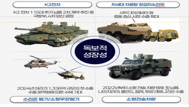 특히, K2전차, 소형 전술차량의 장갑 제작과 관련 내수 및 수출 시장으로 영역을 확대중.