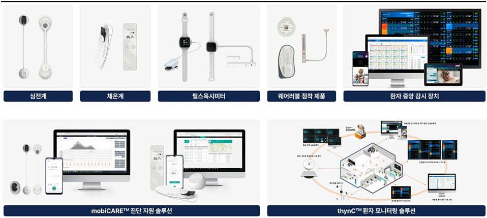 - 동사는 웨어러블 의료기기와 인공지능(AI) 판독 알고리즘 기반 소프트웨어 모니터링 솔루션 전문기업으로 진단지원 및 원격 환자 모니터링 서비스 제공 디지털 헬스케어 솔루션 기업