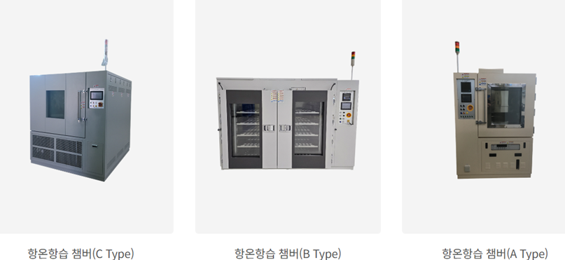 - Automotive 복합신뢰성환경 시험장비: 자동차에 사용되는 차량용 디스플레이와 같은 제품의 고온 Aging 및 환경신뢰성 시험장비.
