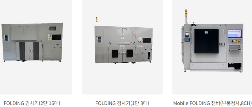 - 폴더블 OLED 복합 신뢰성 시험 장비분야에서 독보적인 기술력 확보. 해외장비 의존에서 자체 기술 국산화 성공.