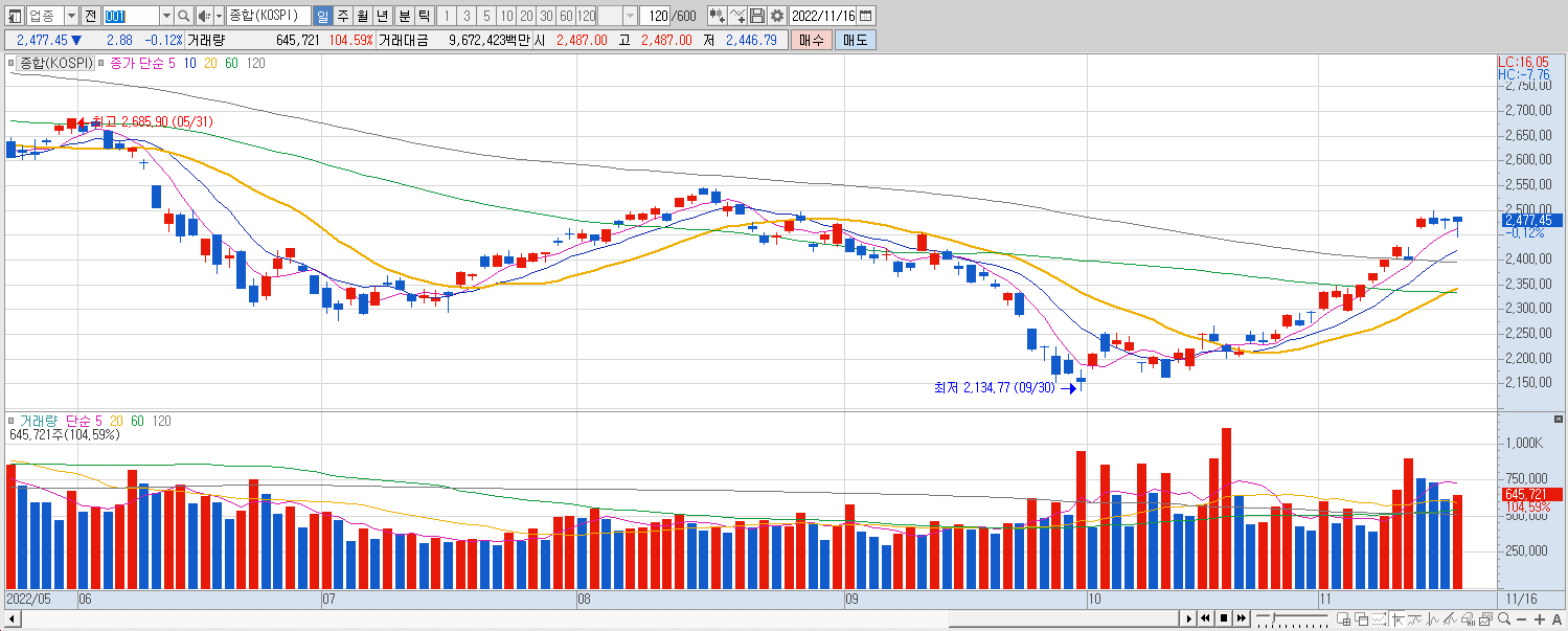 | 11.17 마감 시황, 원달러 환율 상승과 외국인 반도체 중심 매도로 하락 (0) | 2022.11.17 |