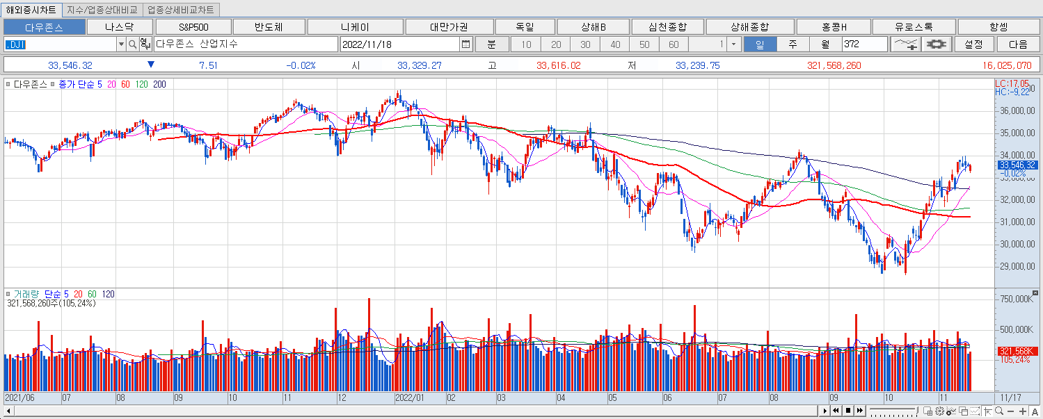 전일 미국 증시는 다우는 0.02% 하락한 3만 3546.32, 나스닥은 0.35% 내린 1만 1144.96에 마감했다.