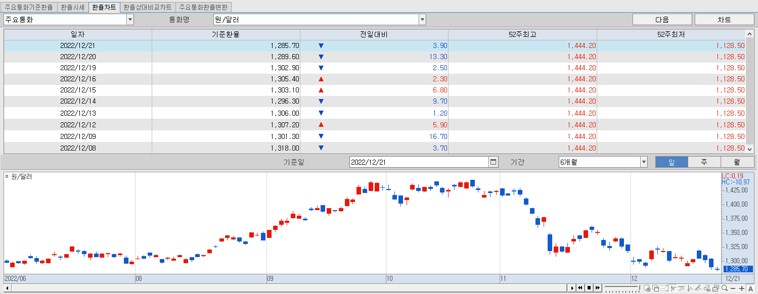 오늘 아시아증시도 혼조세를 보였는데 일본과 중국증시는 하락, 대만, 홍콩증시는 상스세로 마감했다. 원달러 환율은 3.90원내린 1285.70원으로 이틀연속 1300원대를 하회중이다.