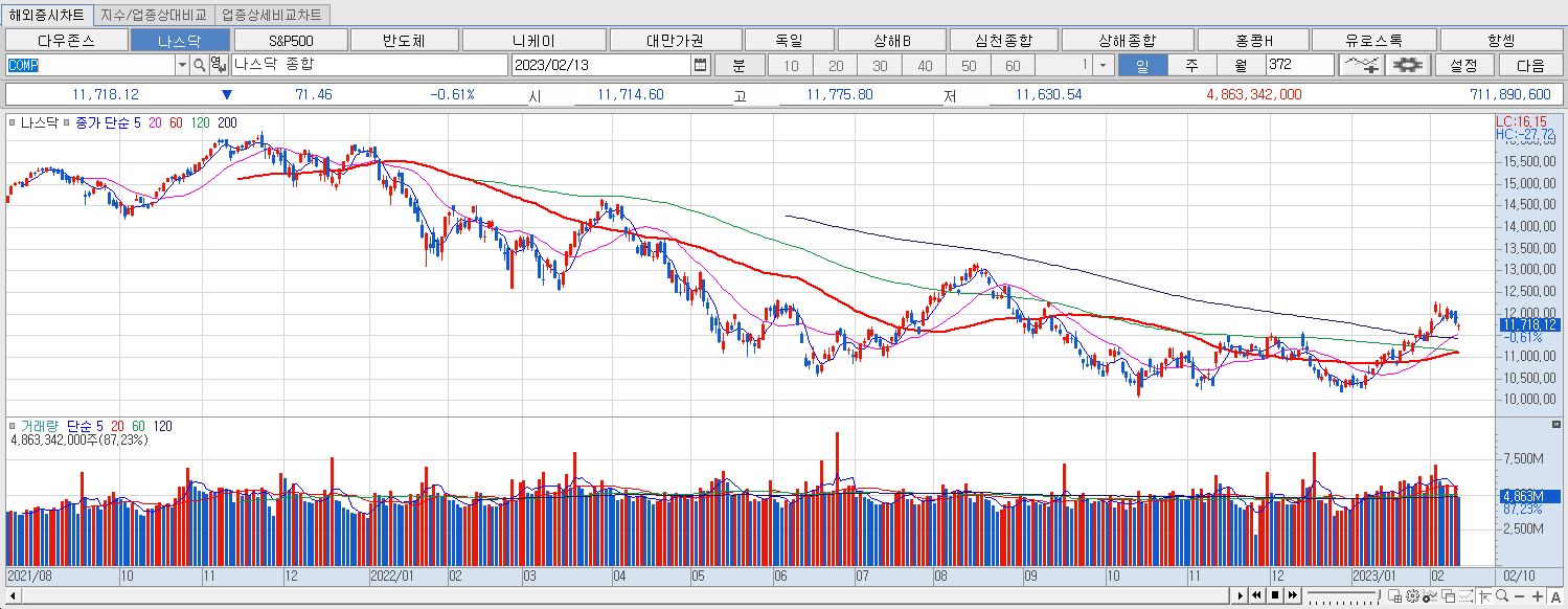 | 2월 15일 오늘 시황 뉴욕증시 예상치 상회한 물가지표에 혼조 마감 (0) | 2023.02.15 |